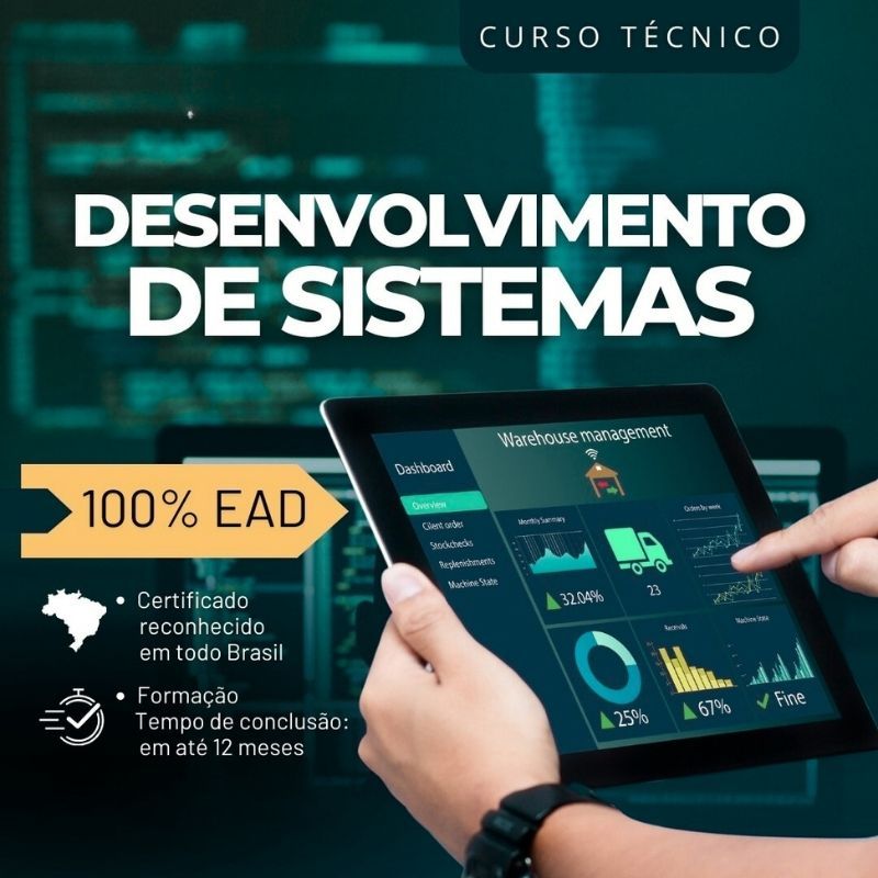 O Curso Técnico em Desenvolvimento de Sistemas EAD, autorizado pelo MEC, oferece formação rápida, flexível e totalmente online para você entrar no mercado de TI com segurança e qualificação.